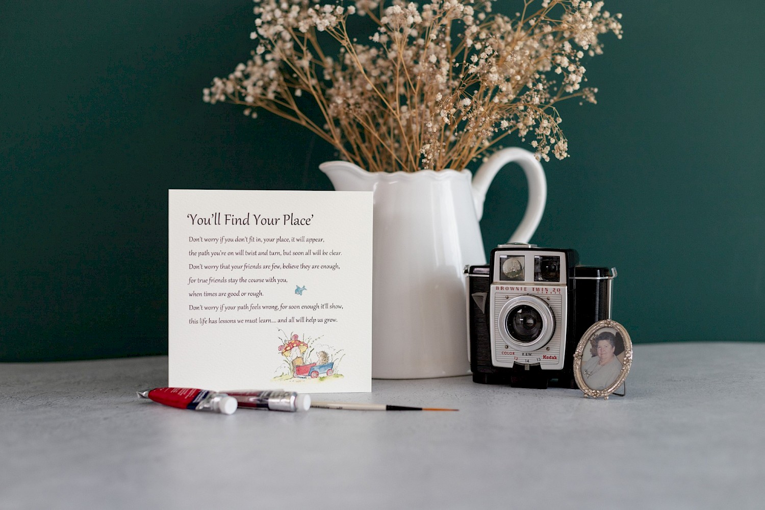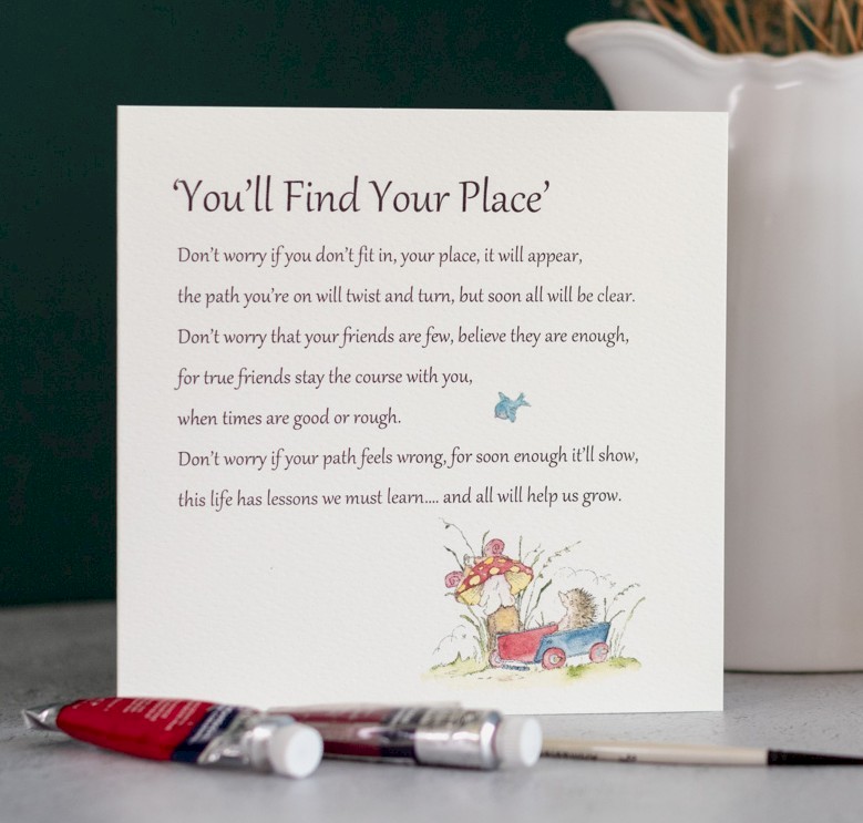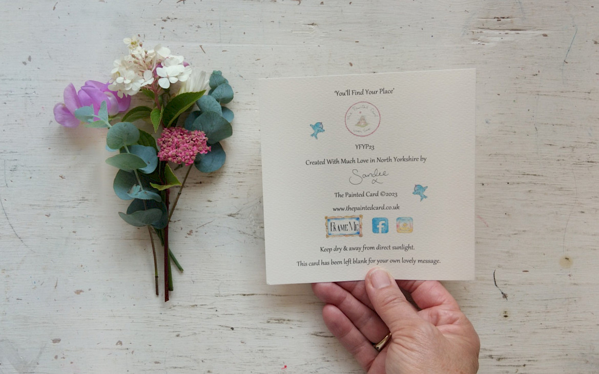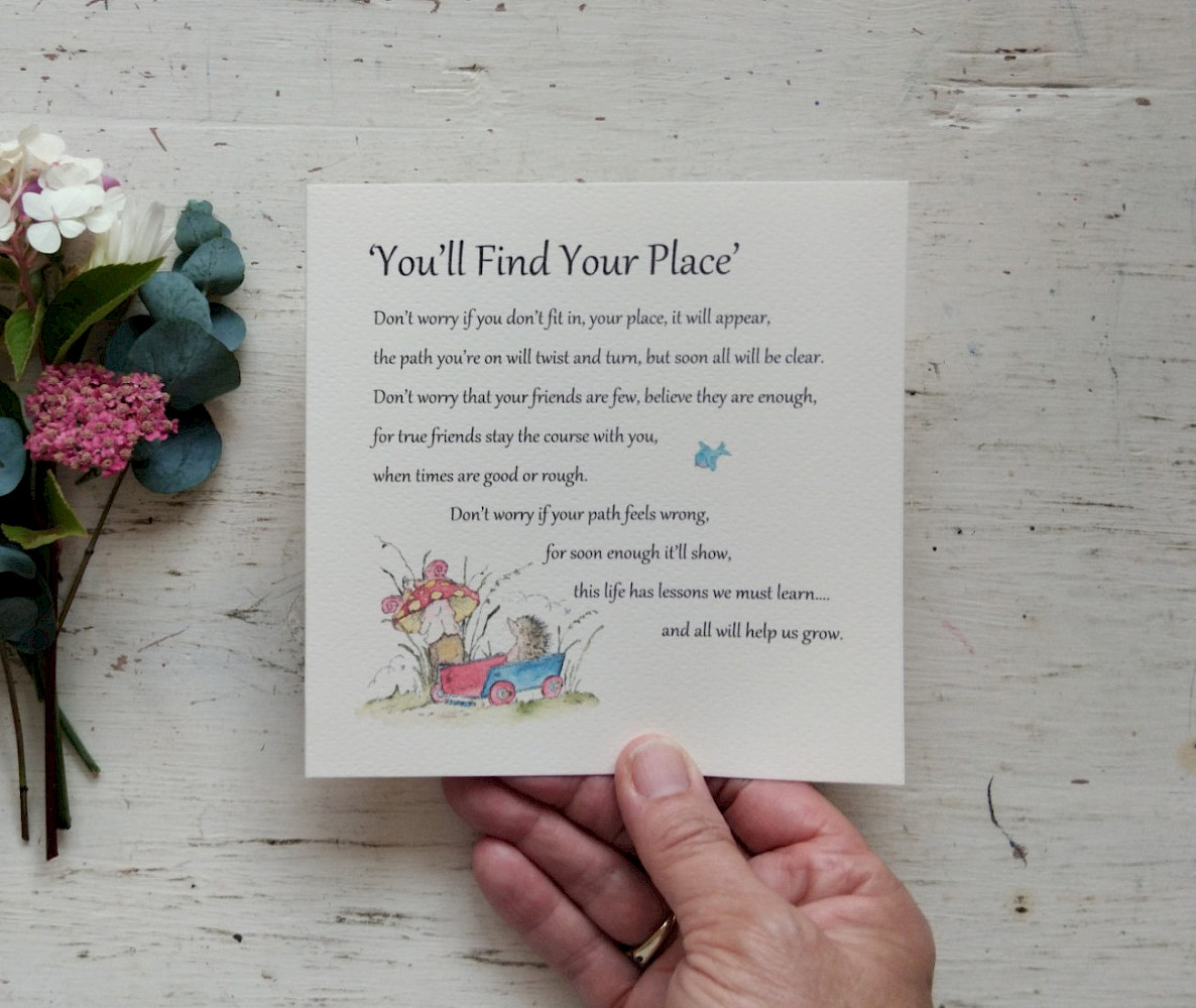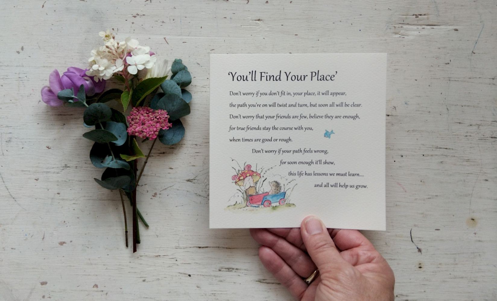 * An original pen and watercolour illustration and poem printed on 250gsm white textured card.